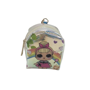 Deslumbrante bolsa de troca, brilhando com arco-íris, uma carteira de moedas enfeitada com encantos de bookbag infantil, carteira mini